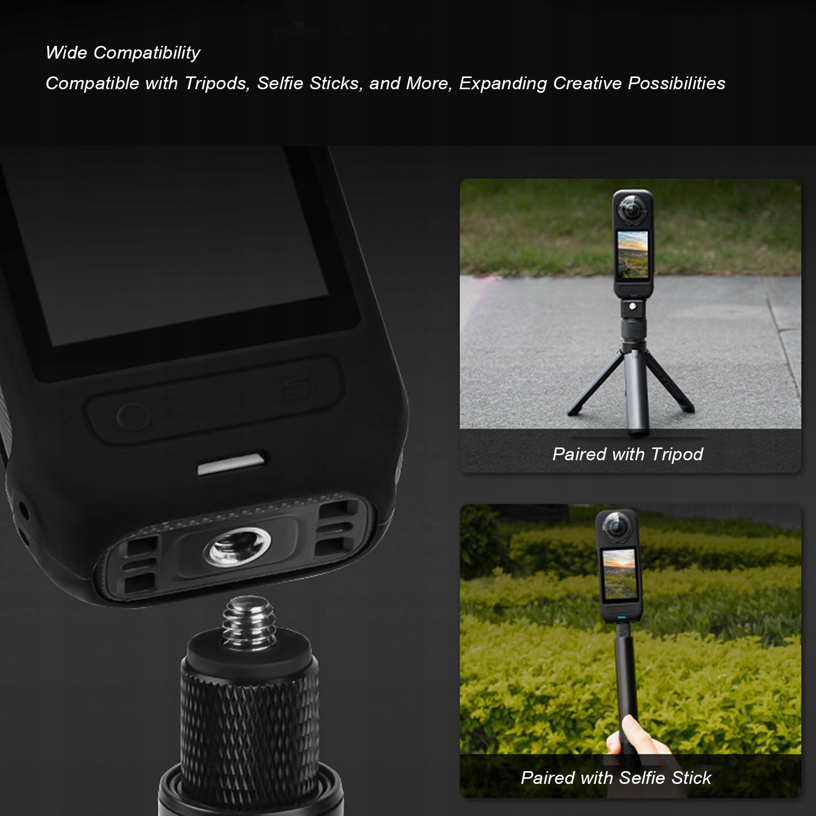 - Застосування: підходить для панорамної екшн-камери Insta360 x5