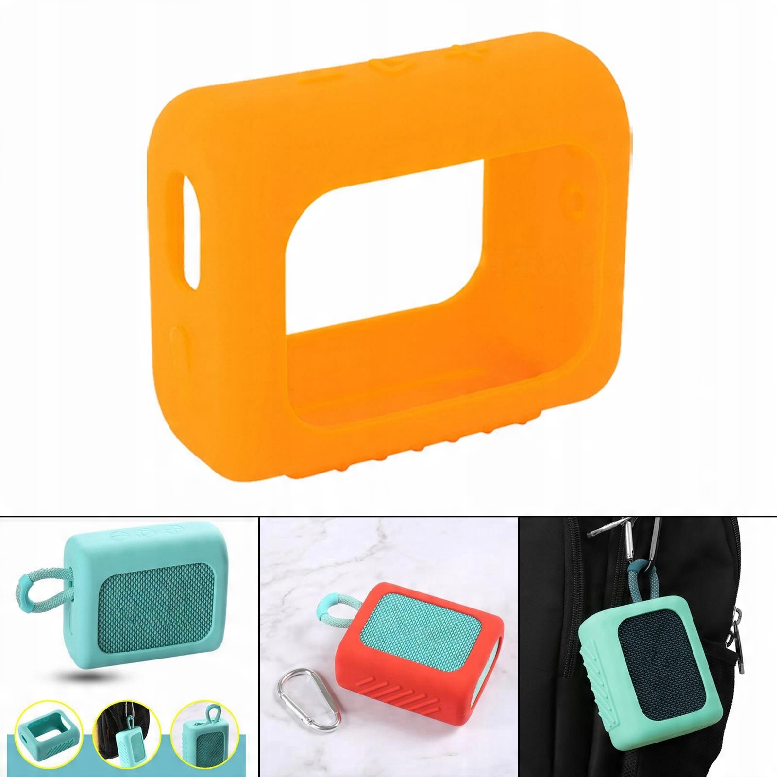 Використання на вулиці: цей силіконовий чохол для динаміка легкий і компактний, поміщається в кишені, рюкзаку чи багажі, підходить для використання на вулиці. Ззаду є отвір для транспортування. Він також постачається з карабіном.