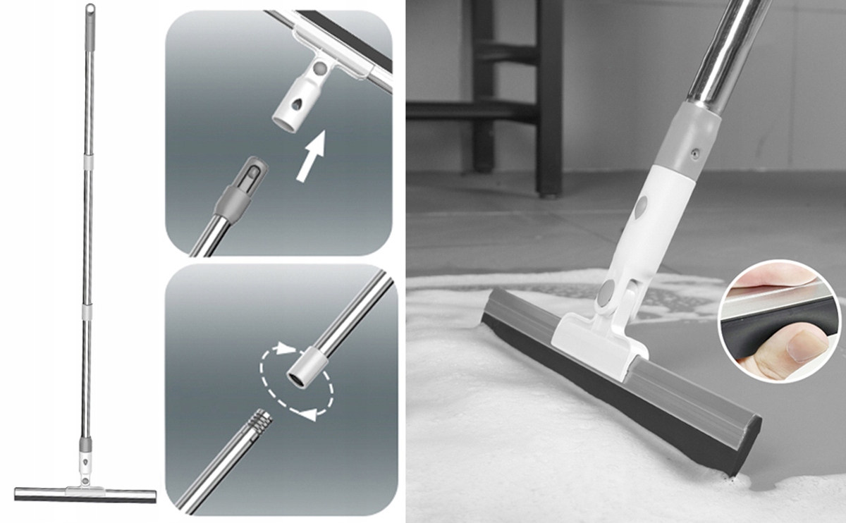 🧹 Крегарований суглоб: Склоочисник може бути повернутий на 180 °. Він легко видаляє воду, бруд, волосся та пил. Він чудово підходить для гаражів, плиток, мокрих підлог.