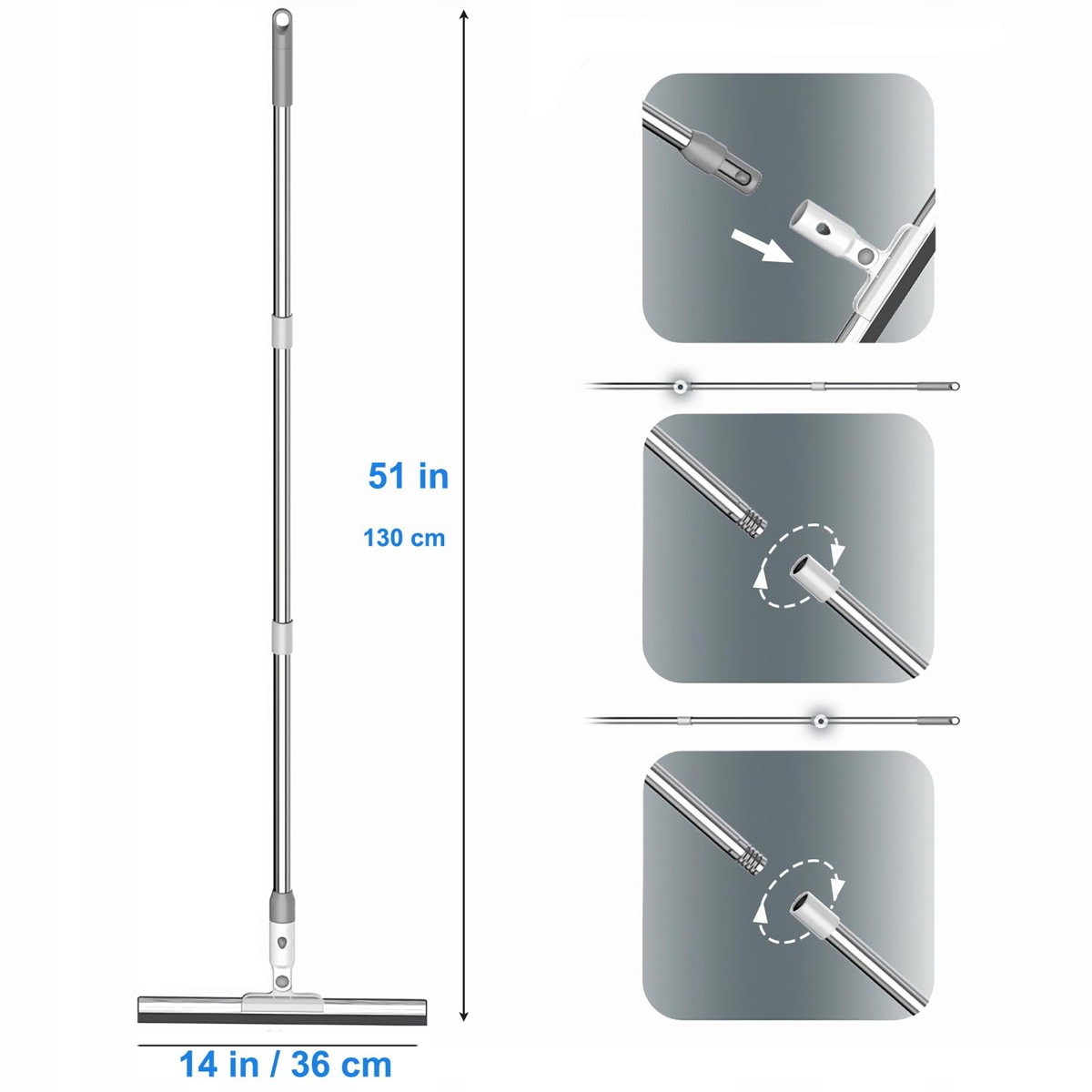 🧹3-частинна ручка секційної ручки: Набір склоочисників має 3-частину сегментарну ручку, ви можете вільно поєднати склоочисники до плитки. Загальна довжина щоглі 132 см.
