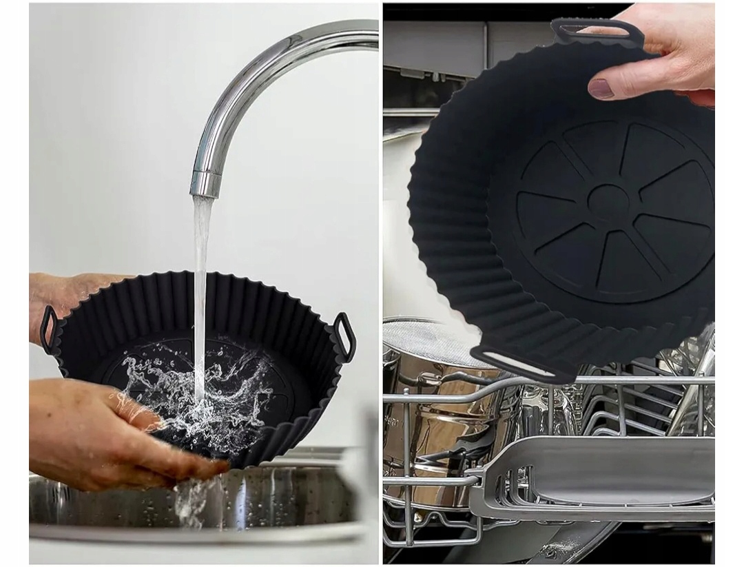 - Легко чистити – ці піддони для фритюрниці дуже м’які, гнучкі та мають антипригарне покриття. Просто вилийте залишки їжі і бруд, переверніть і промийте теплою водою. Його можна мити в посудомийній машині, тому ви позбавите себе від клопоту з миттям рук.