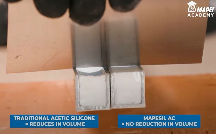 - Mapesil AC – силіконова маса на основі оцтової кислоти, яка використовується для герметизації швів скла, керамікиі анодованого алюмінію.