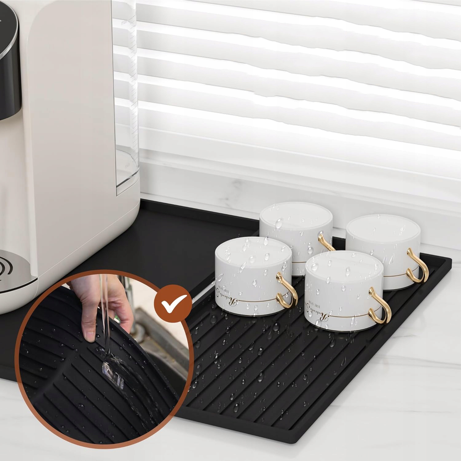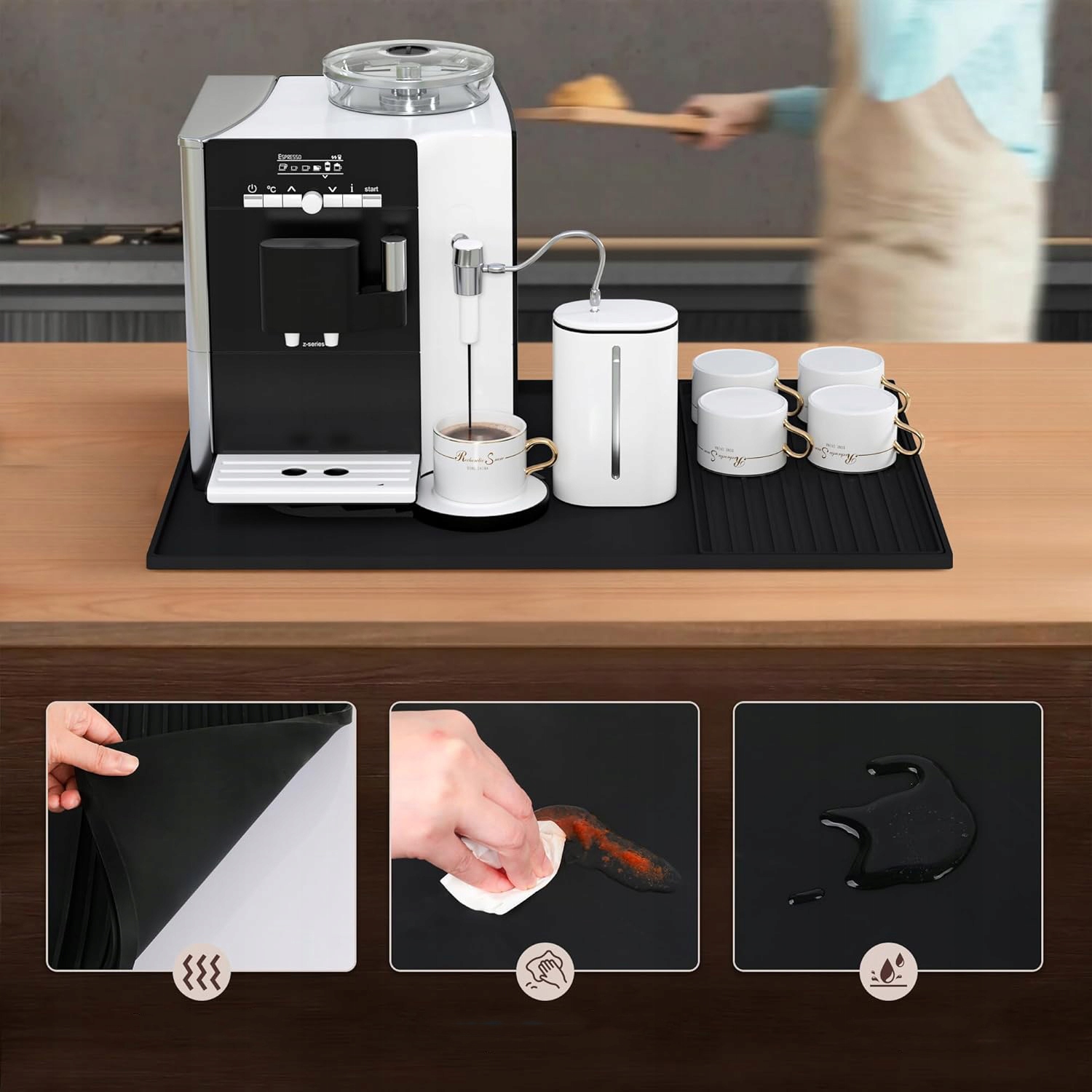 ⬅️ 【Силіконовий матеріал преміум-класу проти ковзання】 Кавовий килимок виготовлено з високоякісного силіконового матеріалу, який є м’яким і зручним, має високу міцність і здатність довго мити. Нековзке гумове дно гарантує, що він надійно тримається на місці.