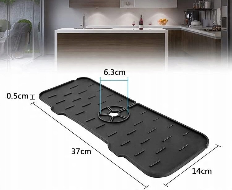 ✅ Захищає стільницю від намокання та дозволяє воді текти прямо в раковину. Його також можна використовувати як підставку для губки, щітки або рідини для миття посуду.