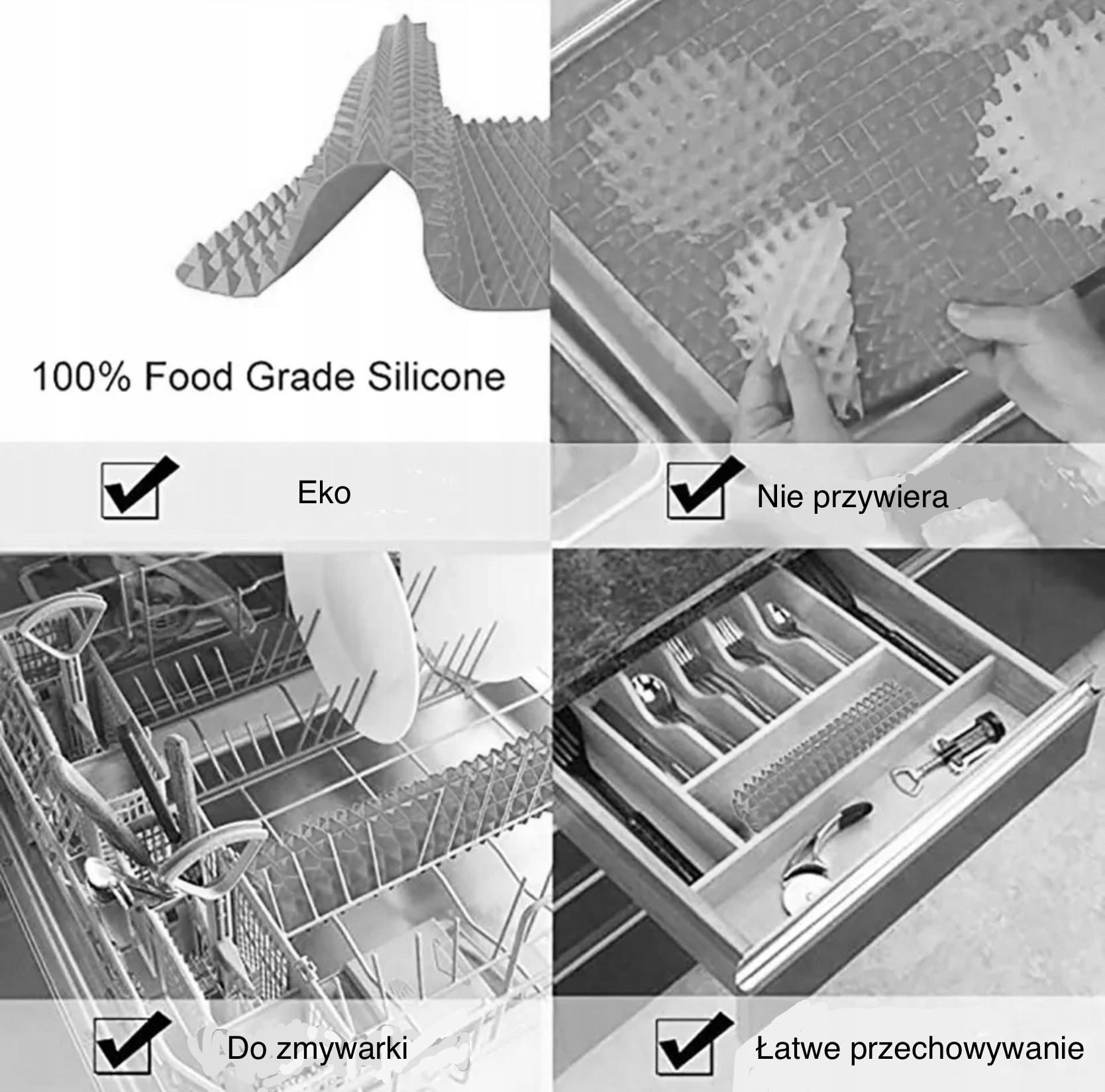 Можна використовувати як підкладку або деко для укладання/охолодження піци, м'яса, овочів, печива. Для зливання посуду. Дренажний килимок стійкий до високих температур, тому його також можна використовувати як поверхню для гарячого посуду та інструментів.