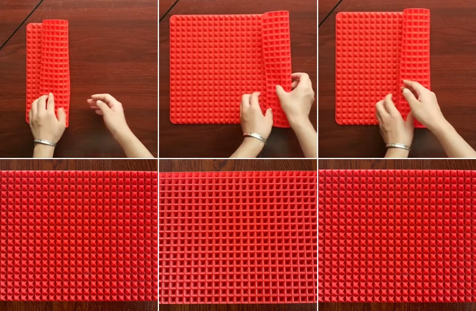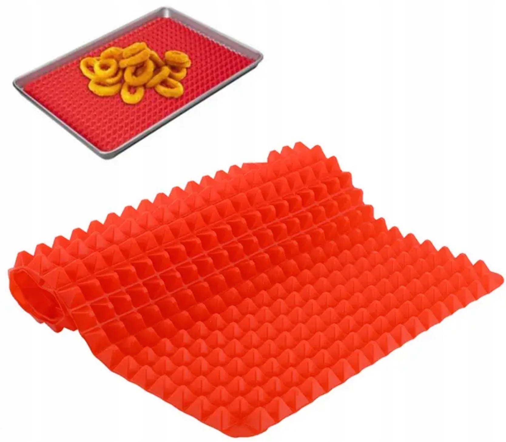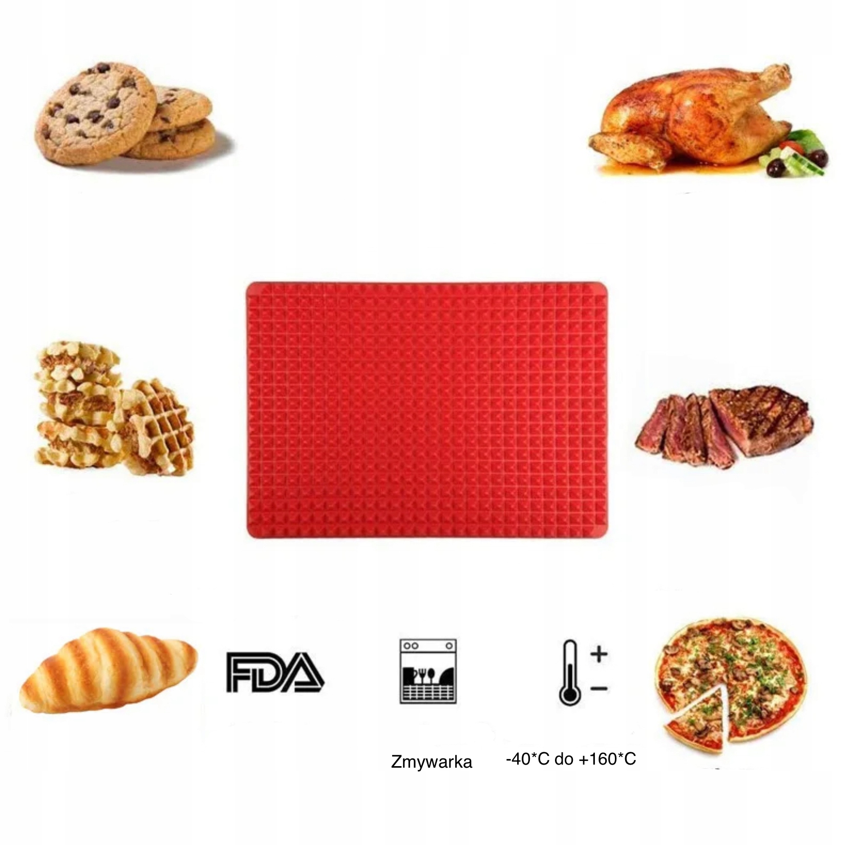 Можна використовувати як підкладку або деко для укладання/охолодження піци, м'яса, овочів і печива. Для зливання посуду. Дренажний килимок стійкий до високих температур, тому його також можна використовувати як поверхню для гарячого посуду та інструментів. Килимок можна використовувати для випікання при температурі до 160*C.