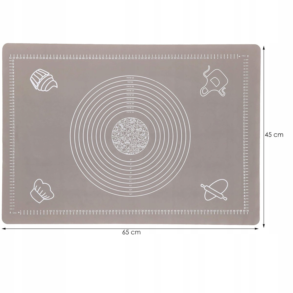 Килимок виготовлено з матеріалів найкращої якості. Вибираючи силікон, ми гарантуємо, що він не вбирає запахи та вологу від доданої рідини до тортів. Крім того, цей матеріал є безпечним для здоров'я та харчовим продуктом.