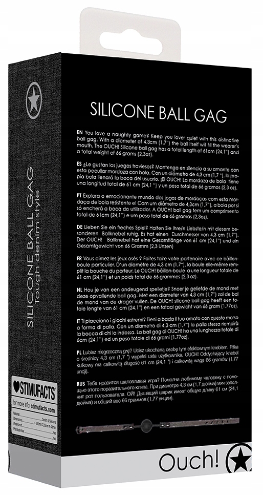 Примусьте коханого замовкнути цією вражаючою приколою. М’яч діаметром 4,3 см (1,7 дюйма) заповнить рот користувача. ОЙ! – Загальна довжина дихаючого кулькового кляпа 61 см (24,1 дюйма) і загальна вага 66 грам (1,77 унції).