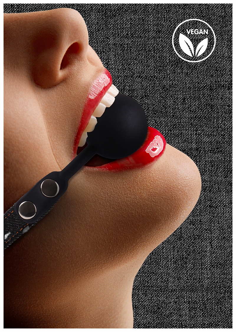 ВИ КУПУЄТЕ ➪ Силіконовий кляп із м’ячиком – із джинсовими ремінцями Roughend – чорний