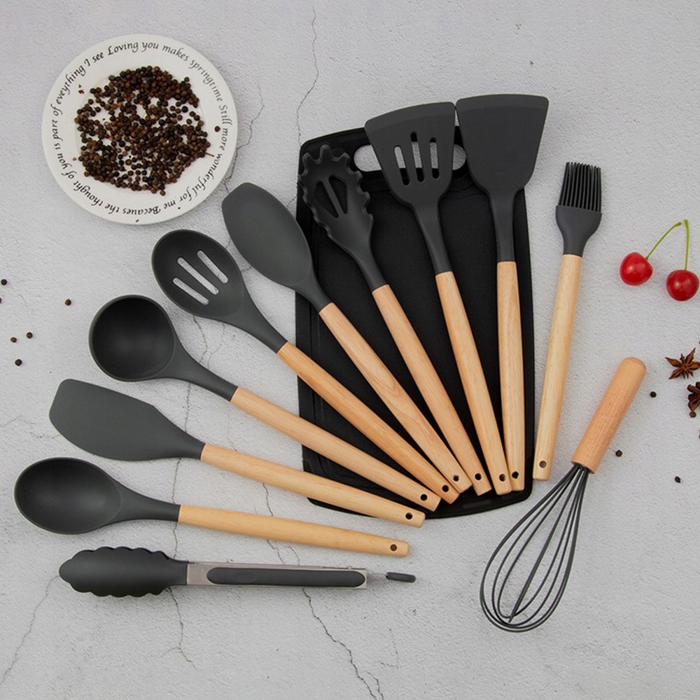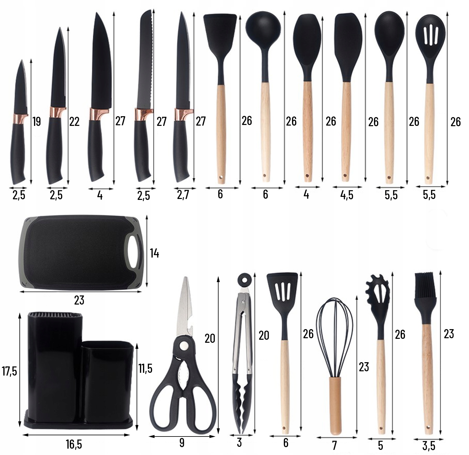 👉 Відкрийте для себе повний набір кухонного начиння з 19 елегантного чорного кольору, який поєднує в собі сучасний дизайн, високу якість і повну функціональність.