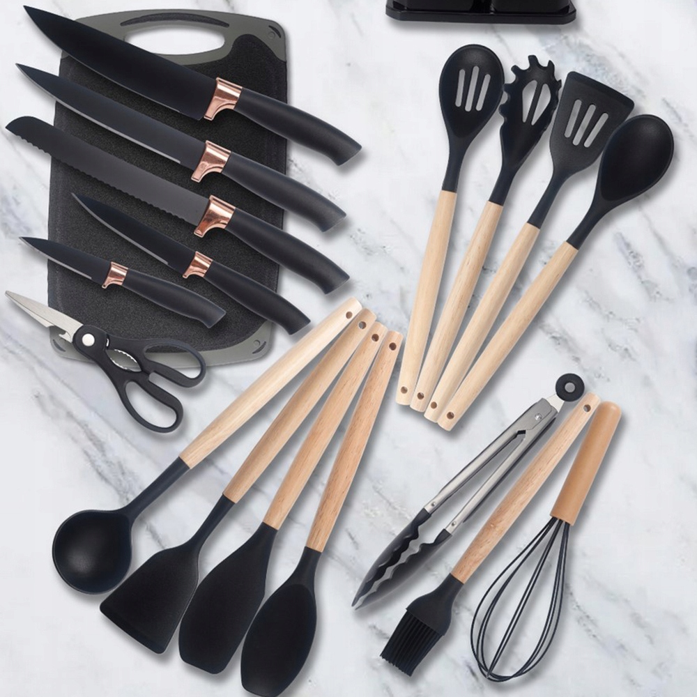 ✨СИЛІКОНОВИЙ КУХОННИЙ НАБІР НОЖІВ BLACK 19 ШТ✨