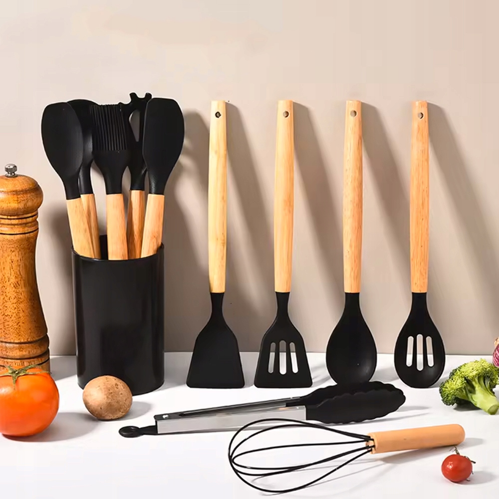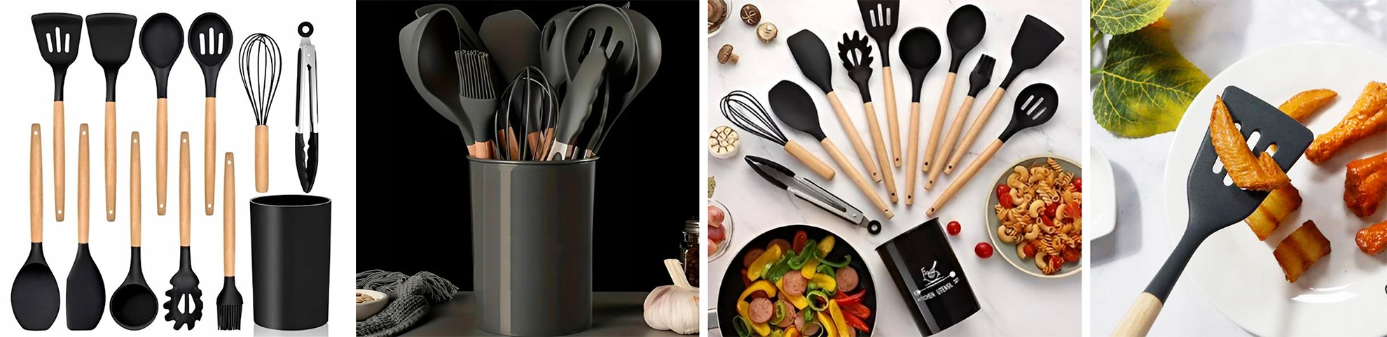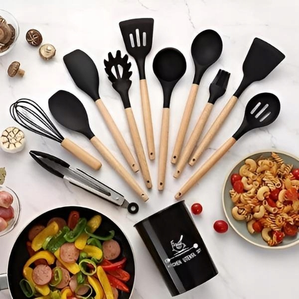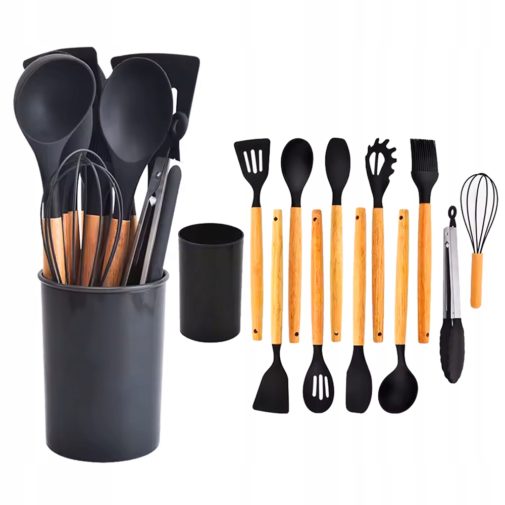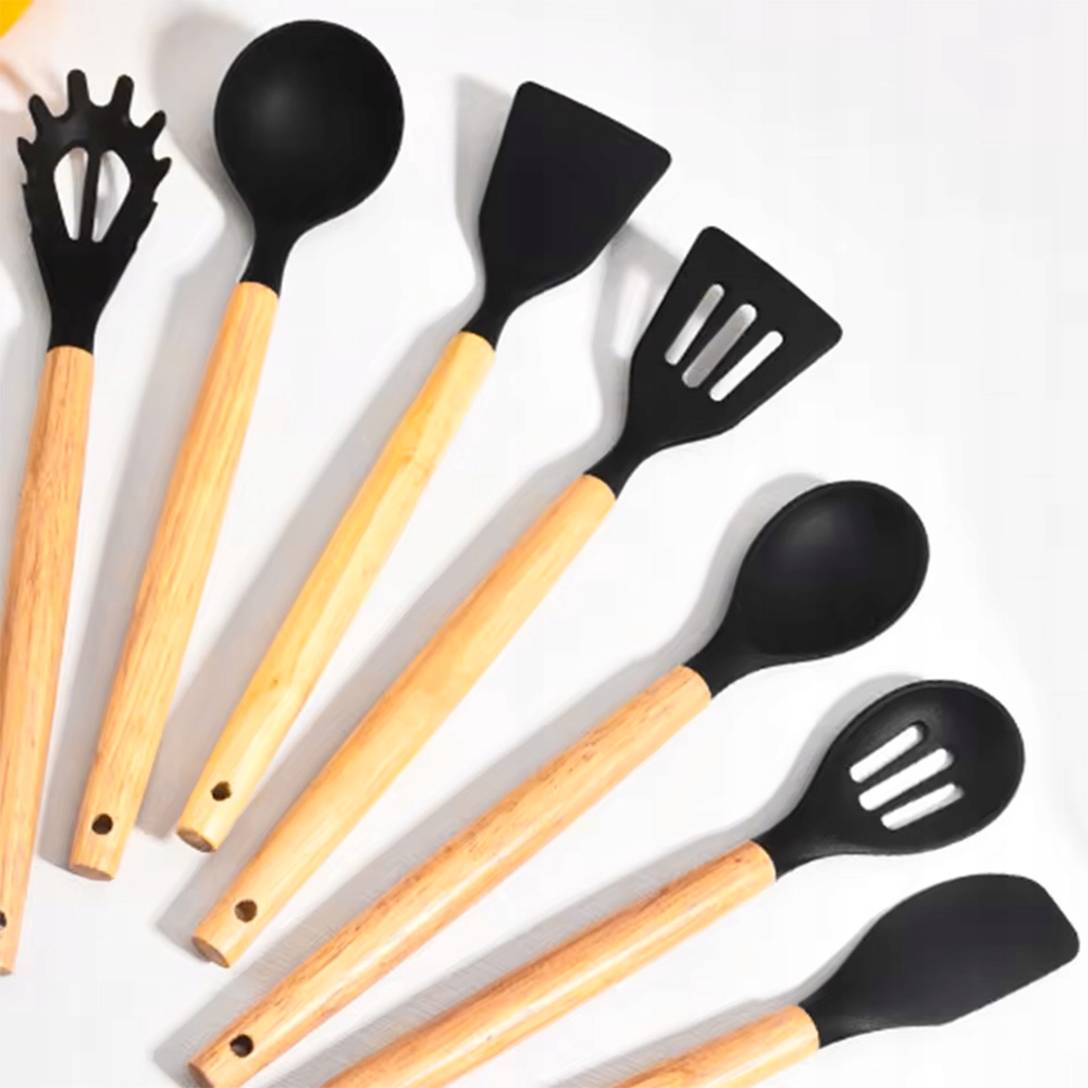 СИЛІКОНОВИЙ кухонний посуд Аксесуари Набір з 12 елементів ДЕРЕВ'ЯНА ручка