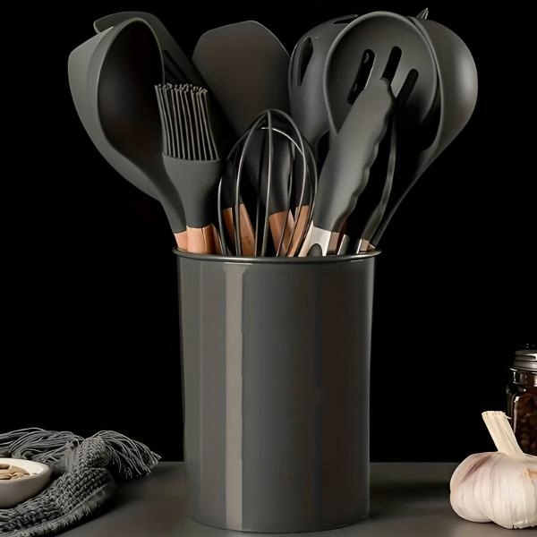 Набір містить 11 основних кухонних речей і практичний контейнер для зберігання, тому на вашій кухні завжди буде порядок.