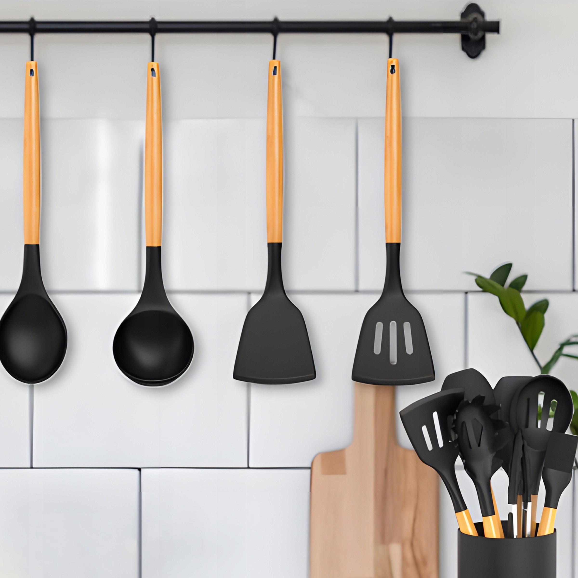 Набір силіконового кухонного посуду є важливим елементом будь -якої кухні, яка покращує заходи, такі як приготування їжі.