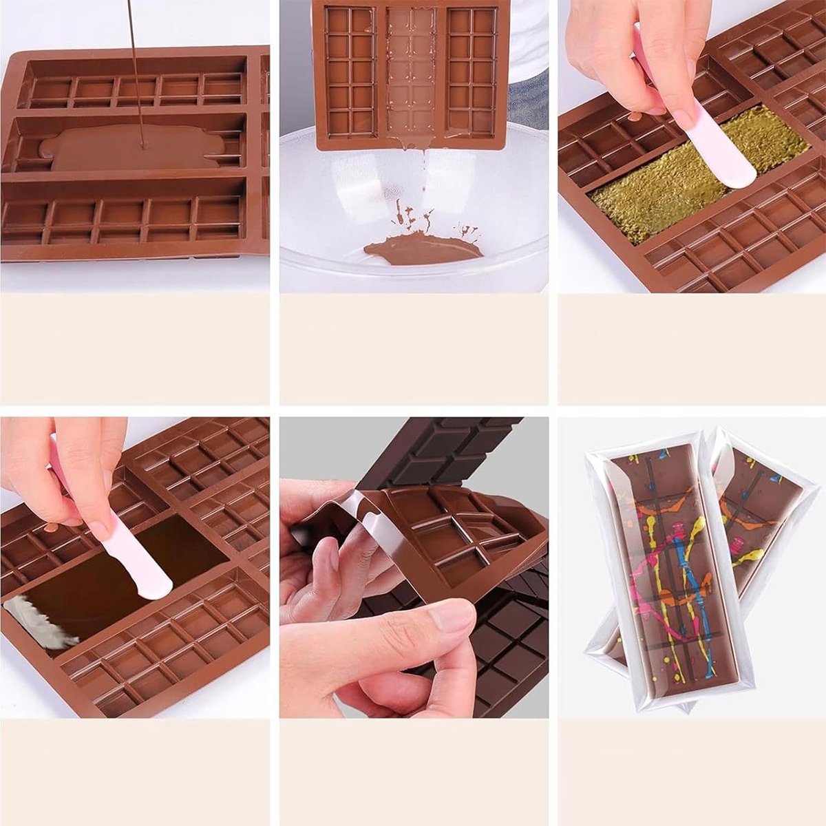 СИЛІКОНОВИЙ НАБІР ДЛЯ ШОКОЛАДНИХ ФОРМ: ви отримаєте 1 форму для плиток шоколаду, 1 лопатку та 100 пластикових пакетів. Його обирають понад 85% наших клієнтів, і він ідеально підходить для приготування та зберігання кількох плиток шоколаду одночасно.