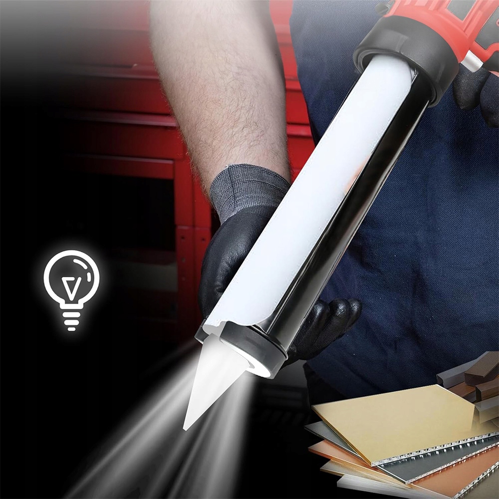 світлодіодний індикатор пістолета для герметизації, оснащений робочим освітленням, спрямований на головку шланга, що полегшує роботу в темряві або в погано освітлених місцях.