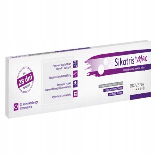 Безпека та ефективність силікону підтверджено клінічними дослідженнями. SIKATRIS Max покращує зовнішній вигляд як старих, так і свіжих рубців. Прозора та самоклеюча форма пластиру забезпечує розсудливість та комфорт використання.