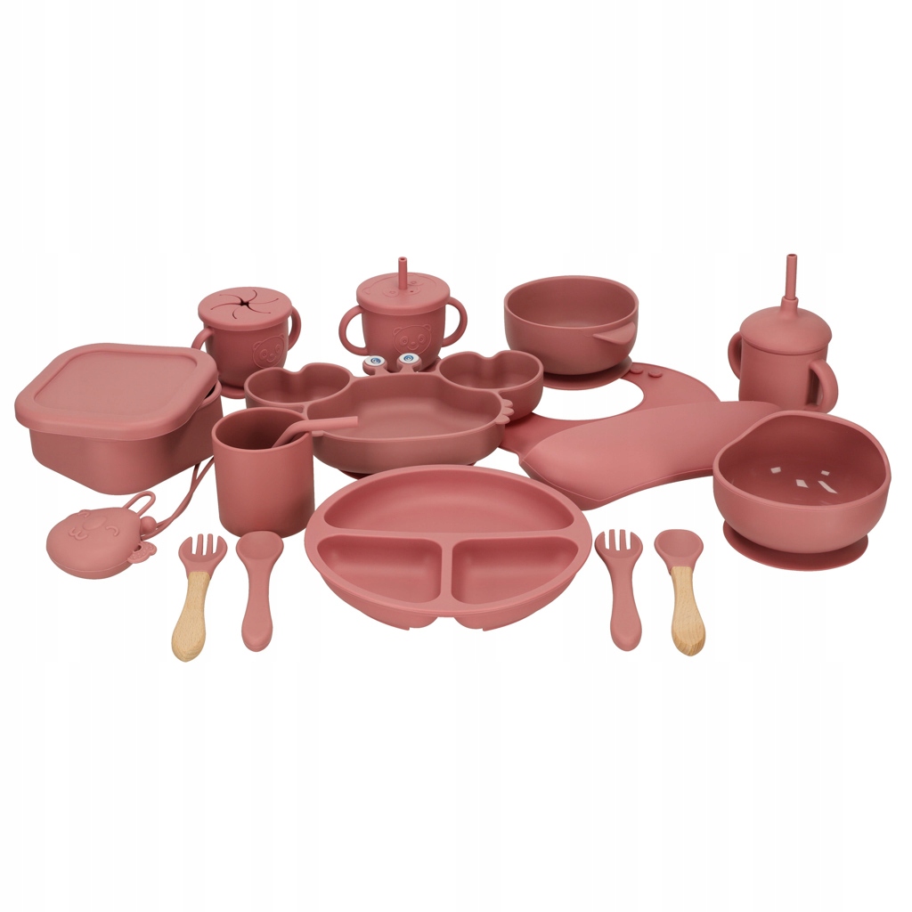 Силіконовий посуд дитячий, краб, набір 19 елементів, темно-рожевий