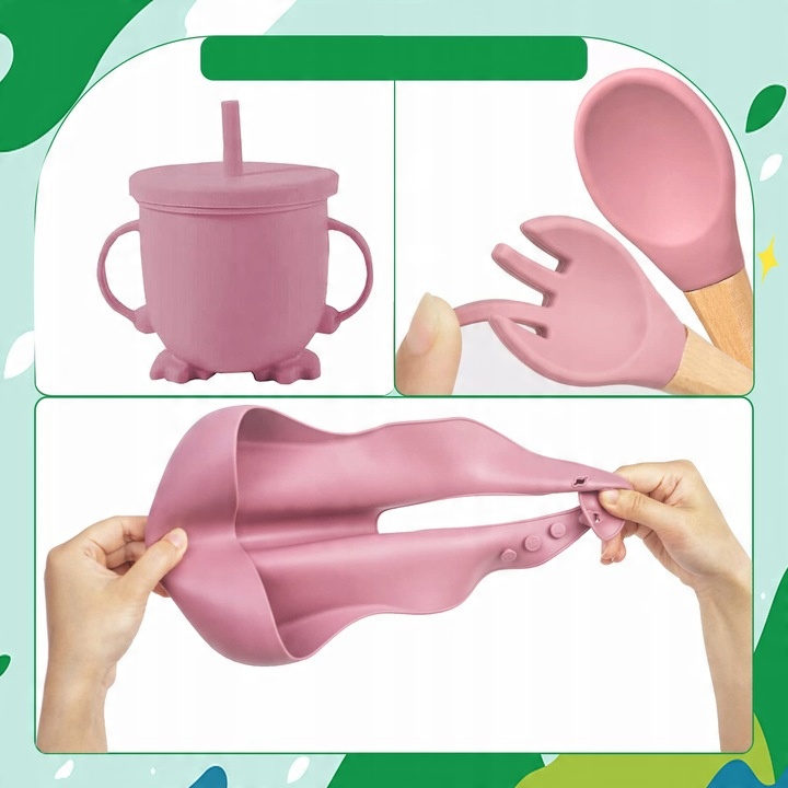 СИЛІКОНОВИЙ ПОСУД ДИТЯЧИЙ НАБІР 8 ШТ. ТЕМНО-РОЖЕВИЙ