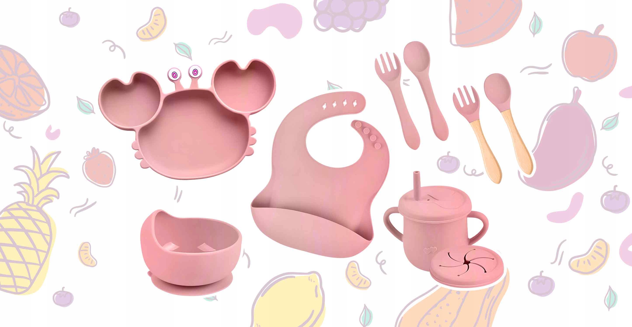 СИЛІКОНОВИЙ ПОСУД НАБІР ПОСУДУ ДЛЯ ДІТЕЙ З НАГРУДНИКОМ КРАБ ПРИСОСКА