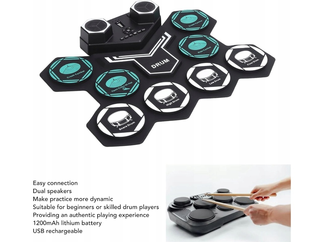 Якщо ви мрієте грати на барабанах, але не маєте місця чи бюджету на повнорозмірний набір, електрична барабанна установка G6008 із синім силіконовим роликовим барабаном стане ідеальним рішенням. Завдяки передовій технології та компактному дизайну ця барабанна установка дозволяє насолоджуватися грою на барабанах у будь-який час і будь-де.