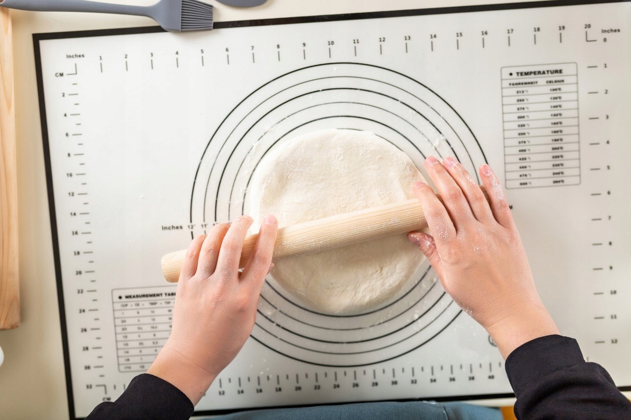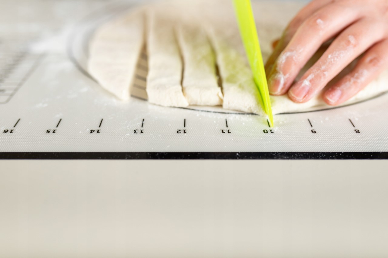 ✅ сантиметр по краях і різні діаметри посередині килимка - b>легше замішувати тісто певного розміру