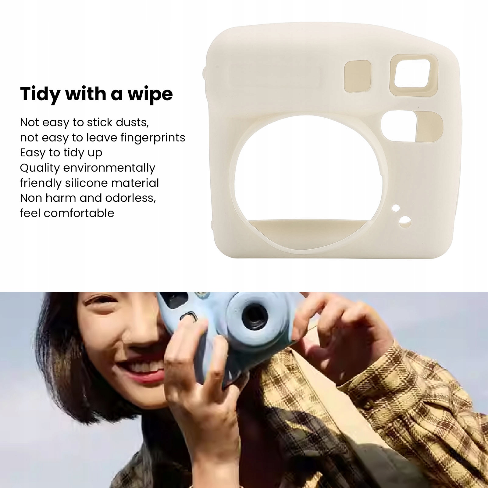 2. ЛЕГКО ВИТИРАТИ: силіконовий захисний чохол камери можна чистити тканиною, на ньому не прилипає пил, на ньому не залишаються відбитки пальців, його легко тримати в порядку