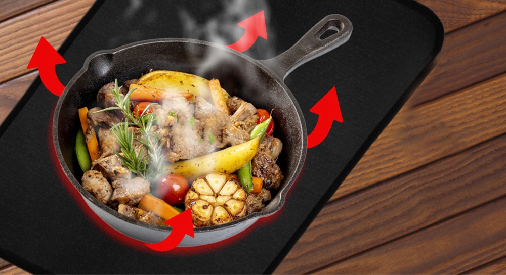 ✨ Ефективно блокує теплове випромінювання від кухонних приладів, таких як фритюрниці та гарячі каструлі, запобігаючи пошкодженню високоякісних стільниць, таких як дерево та мармур.