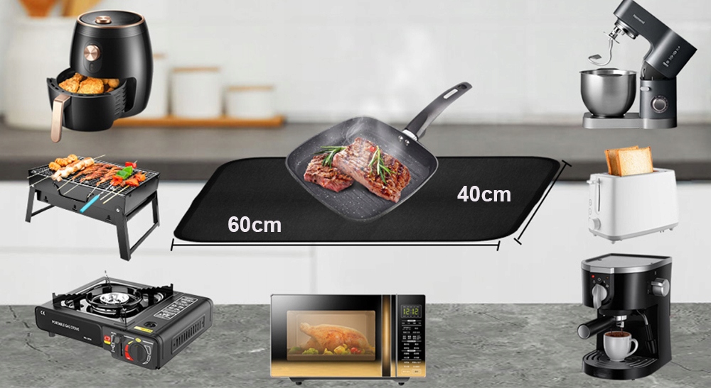 ✨ Цей універсальний прилад 40 х 60 см сумісний із широким діапазоном високотемпературного посуду та кухонних приладів, зокрема фритюрниць, кавомашин, духовок і мікрохвильових печей.
