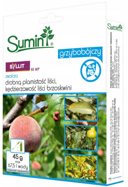 1x Syllit 65WP для дерев захворювань кучерявого листя. Використання фруктових та ручних розпилювачів