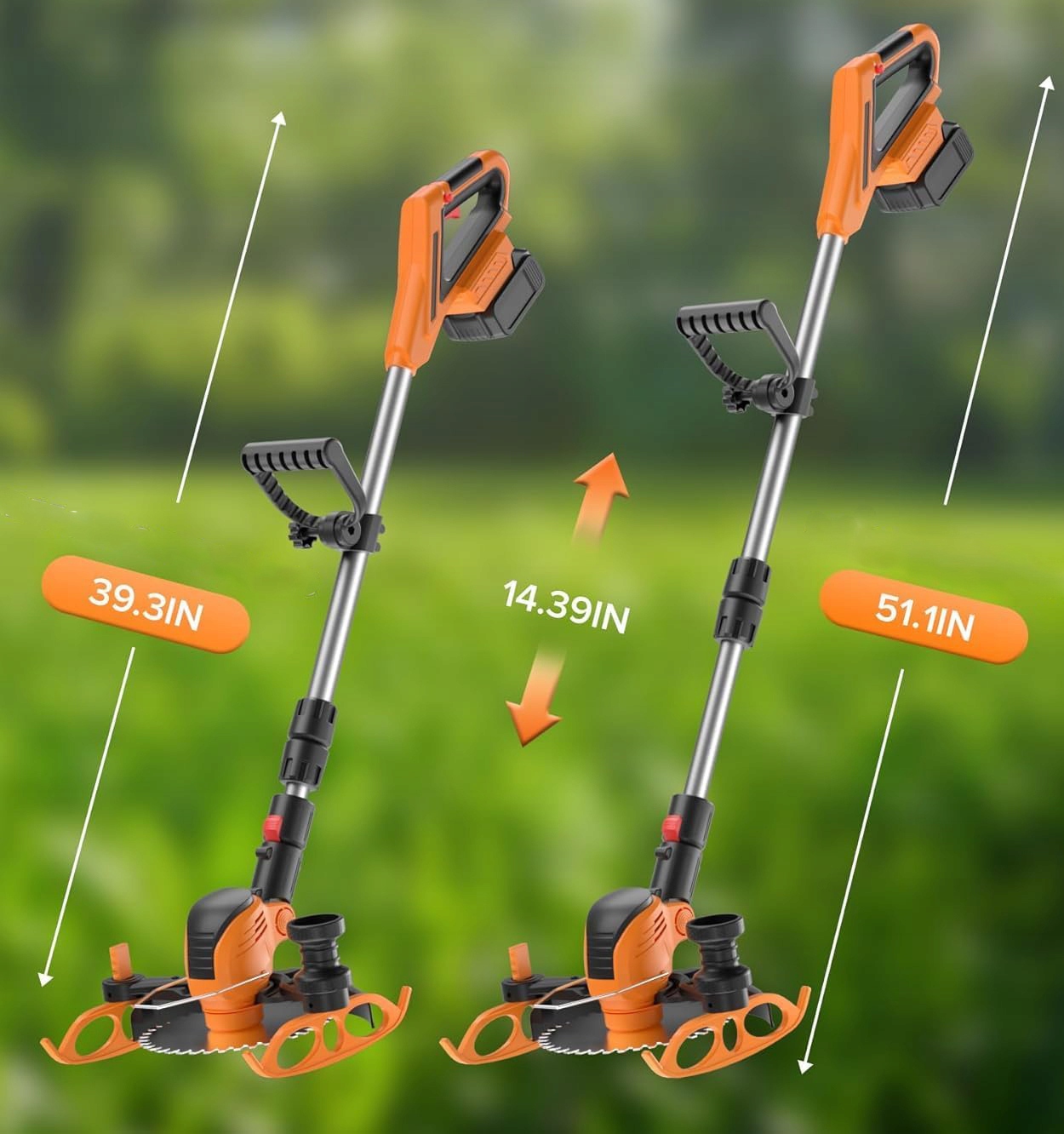 пов'язані з ваганням. Пластикове лезо підходить для обрізки м'якої трави та легких бур’янів, металеве діамантове лезо підходить для обрізання чагарників, а лезо пилки підходить для обрізки товстої трави та гілок.
