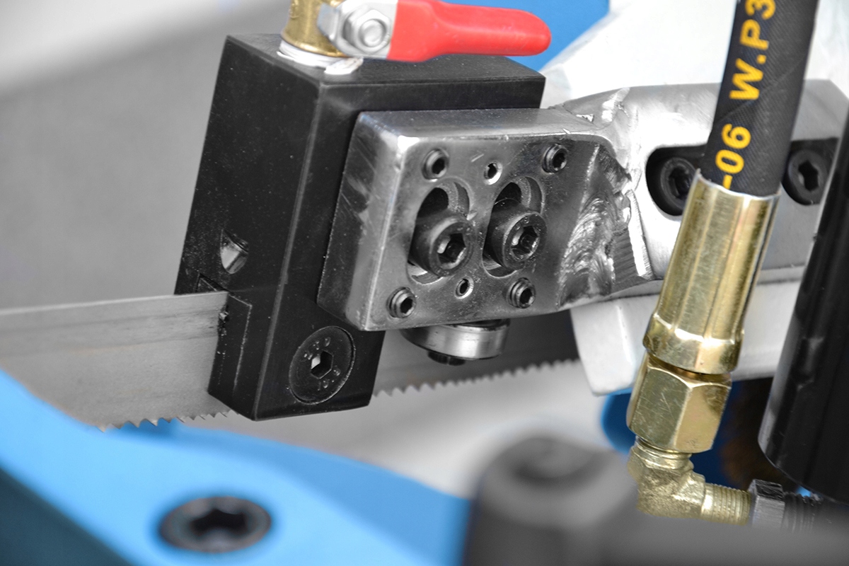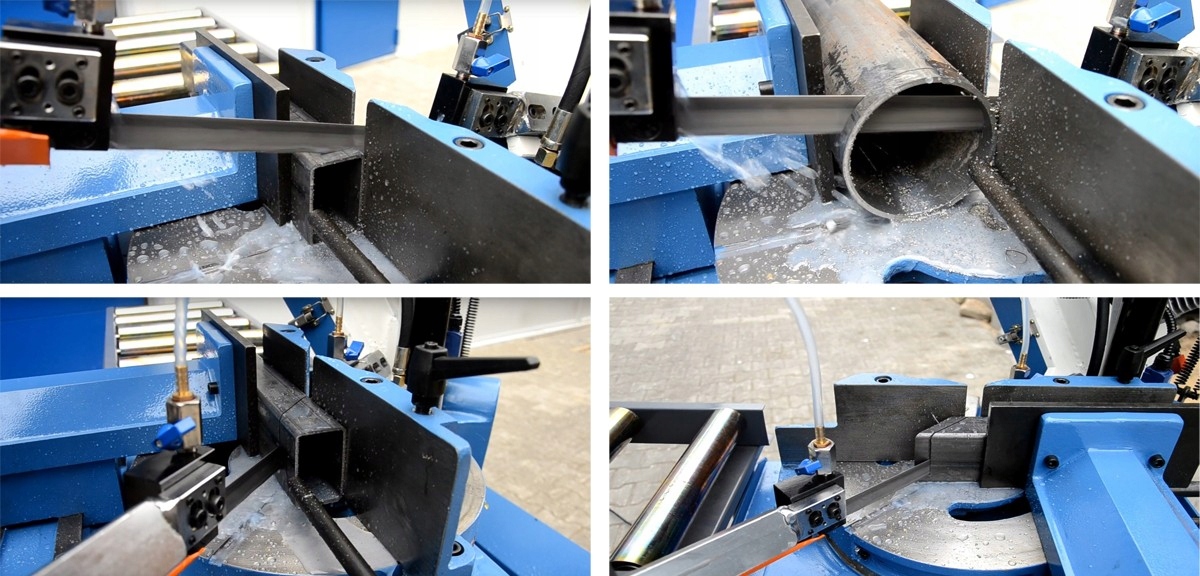 Ця модель використовується в одиничному та серійному виробництві. Завдяки сильній конструкції, він дозволяє вирізати широкий спектр матеріалів, включаючи нержавіючу сталь, сталь інструменту, повні матеріали та профілі. Пристрій дозволяє кутовим різанням матеріалу, повернувши плече вліво і вправо. Рука різака виготовлена з рівномірного чавуну з 27 -мм шириною ріжучою стрічкою, яка використовується в цьому різакці. Він забезпечує повне виготовлення мультизеренних скорочень як профілів, так і повних матеріалів. Поклики лез оснащені твердими металевими плитками - спіловими карбідами та системою роликових підшипників. Це спілові екскурсоводи карбіду відповідають за точність та прямолінійність різання. Рука оснащена автоматичним датчиком плоті, вона схильна на 25 градусів, що збільшує термін експлуатації леза. Кисть очищення встановлена з дна плеча для ідеального досягнення чистоти та функціонування леза.
