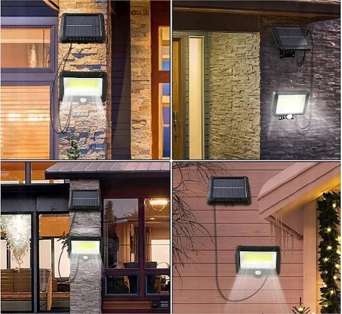 4 COB Світлодіод Прикріплений Сонячна панель Акумулятор Про ліхтар змушує світити всю ніч - залежно від погоди. датчик сутінки (в сонячній енергії) прикріпить лампу після темряви і вимкнеться на світанку. 4