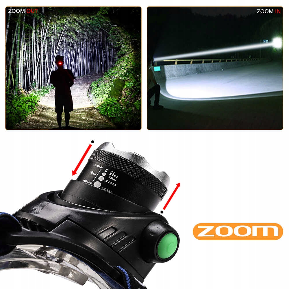 Надійний передній ліхтарик, який дозволяє виконувати будь -які роботи в умовах, що вимагають освітлення, не залучаючи руки до збереження джерела світла. Фара оснащена регулюванням - зум - завдяки якому він має плавне регулювання фокусування світла від дуже широкого діапазону до сильно зосередженого діапазону. Фокальна змінна - масштаб. З максимальною купою діапазон верху до 500 м, а термін експлуатації діода - 100 000 годин! Фара виготовлена з повітряного алюмінію - найсильніший доступний на ринку + пластмаса ABS. Крім того, фара оснащений додатковим одним червоним діодом, розташованим на спині на контейнері акумулятора. Так