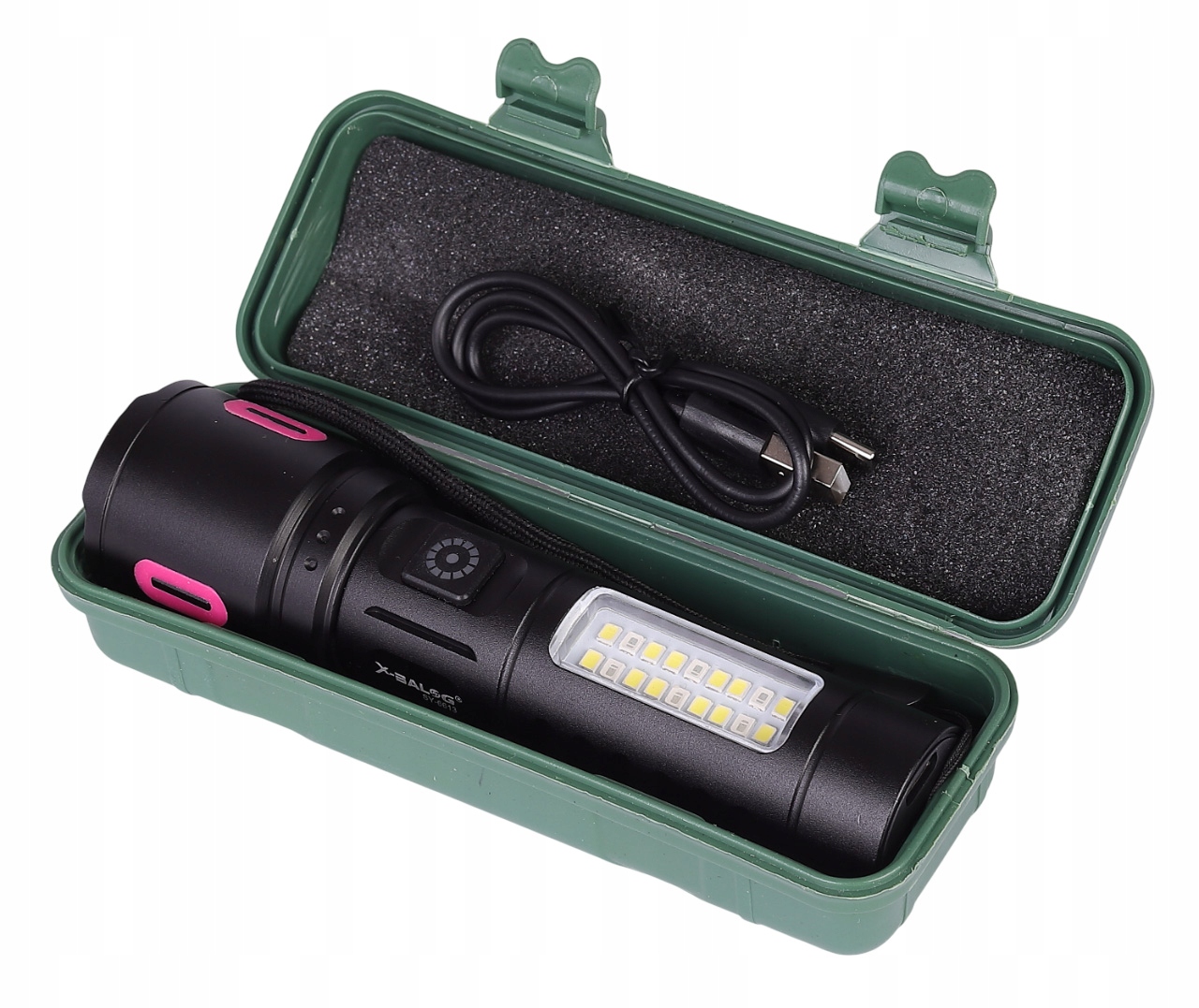 Ліхтарик оснащений акумулятором. Завдяки цьому ви можете використовувати доданий USB -кабель для зарядки акумулятора, коли ви маєте доступ до електроенергії або заряджають його перед більшою поїздкою або подорожі, де не буде доступу до розетки.