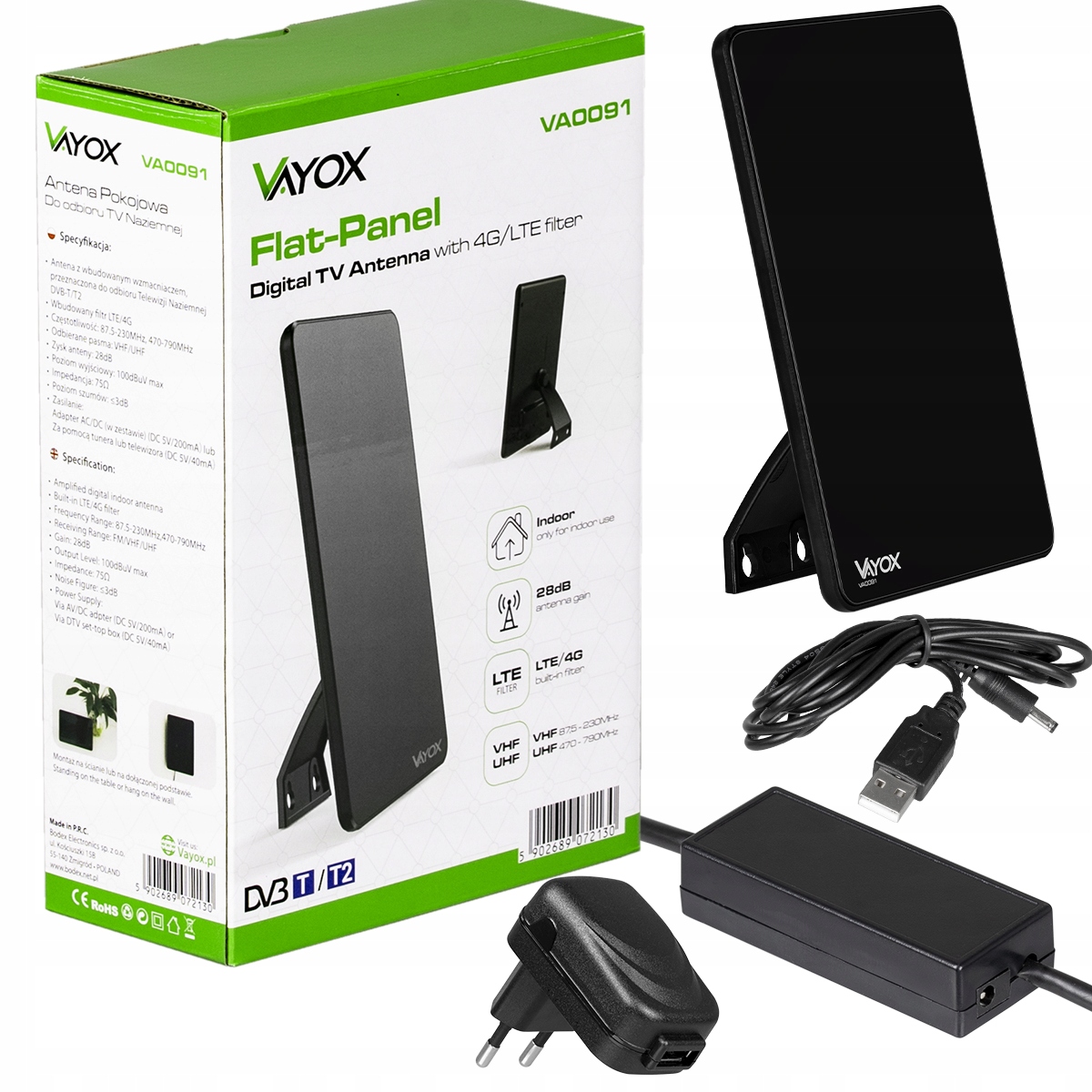 ПОТУЖНА ВНУТРІШНЯ ТВ-АНТЕНА DVB-T2 ДЛЯ НАЗЕМНОГО ТБ, АКТИВНЕ 4K LTE VAYOX