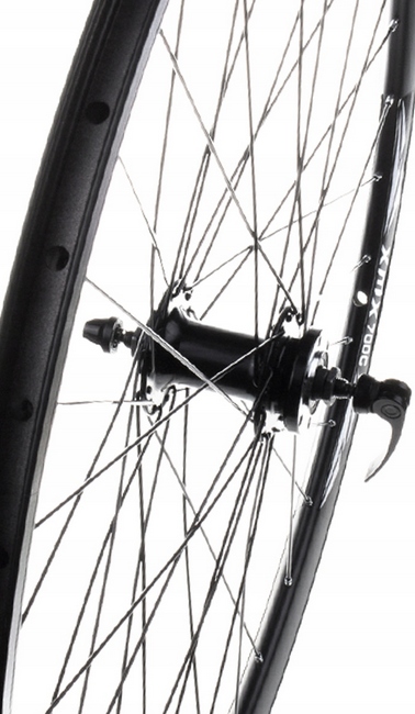 переднє велосипедне колесо в розмірі 26", що складається з обода та маточиків XMX та 36 спиць. Чорний конічний ободок виготовлений з алюмінію, завдяки якому він надзвичайно міцний, і в той же час дуже легкий. Через важкі навантаження, на які викриваються їзда на велосипеді, вона має тришармову структуру, що робить її, безумовно, більш міцною та жорсткою. Рим оснащений 36 отворами для спиць і адаптований до встановлення трубки. Хаб XMX запечатав, машинні підшипники, вісь, оснащені стандартним кріпленням для швидкого-штату (QR) і адаптується до гальма диска з встановленням для 6 гвинтів. Хаб з ободом з'єднує 36 чорних спиць, що в поєднанні створює дуже стабільну структуру і надзвичайно міцне, міцне і жорстке колесо. Він ідеально працює в нерівній місцевості, а також під час більш динамічного водіння та різкого гальмування, забезпечуючи гладку та безпроблемну роботу всього шасі. Колесо присвячене MTB, міським та походним велосипедам.