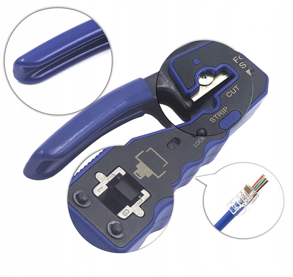 - Затискання стандартних CAT 5E, CAT 6 та CAT 7