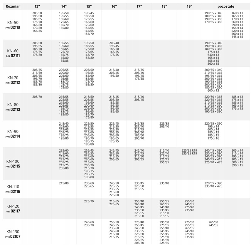 розмір шин ланцюгів (13 ", 14", 15 ", 16", 17 ", 18", 19 ")
