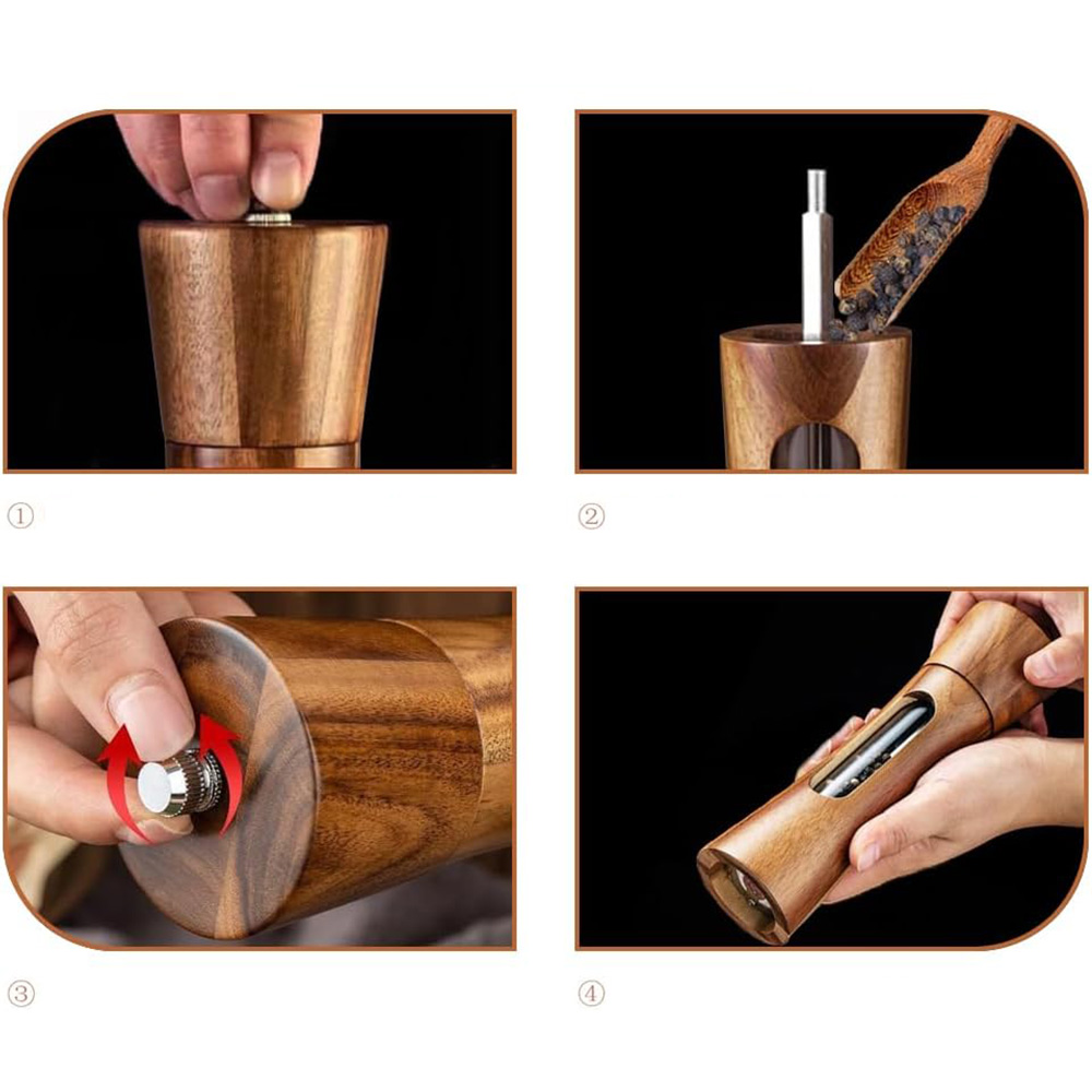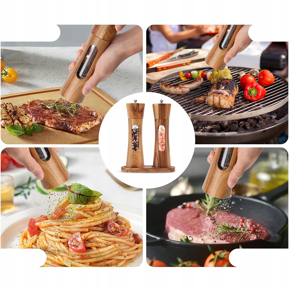 🎁🎁Висока якість:наші млинки для спецій виготовлені з елегантного дерева акації та акрилового скла, з твердою керамічною млином, завдяки високій якості виготовлення млинки забезпечують надійну роботу протягом багатьох років. Індивідуальна текстура деревини робить кожну перечницю унікальною. Оскільки деревина водостійка, ви можете просто почистити її вологою тканиною.