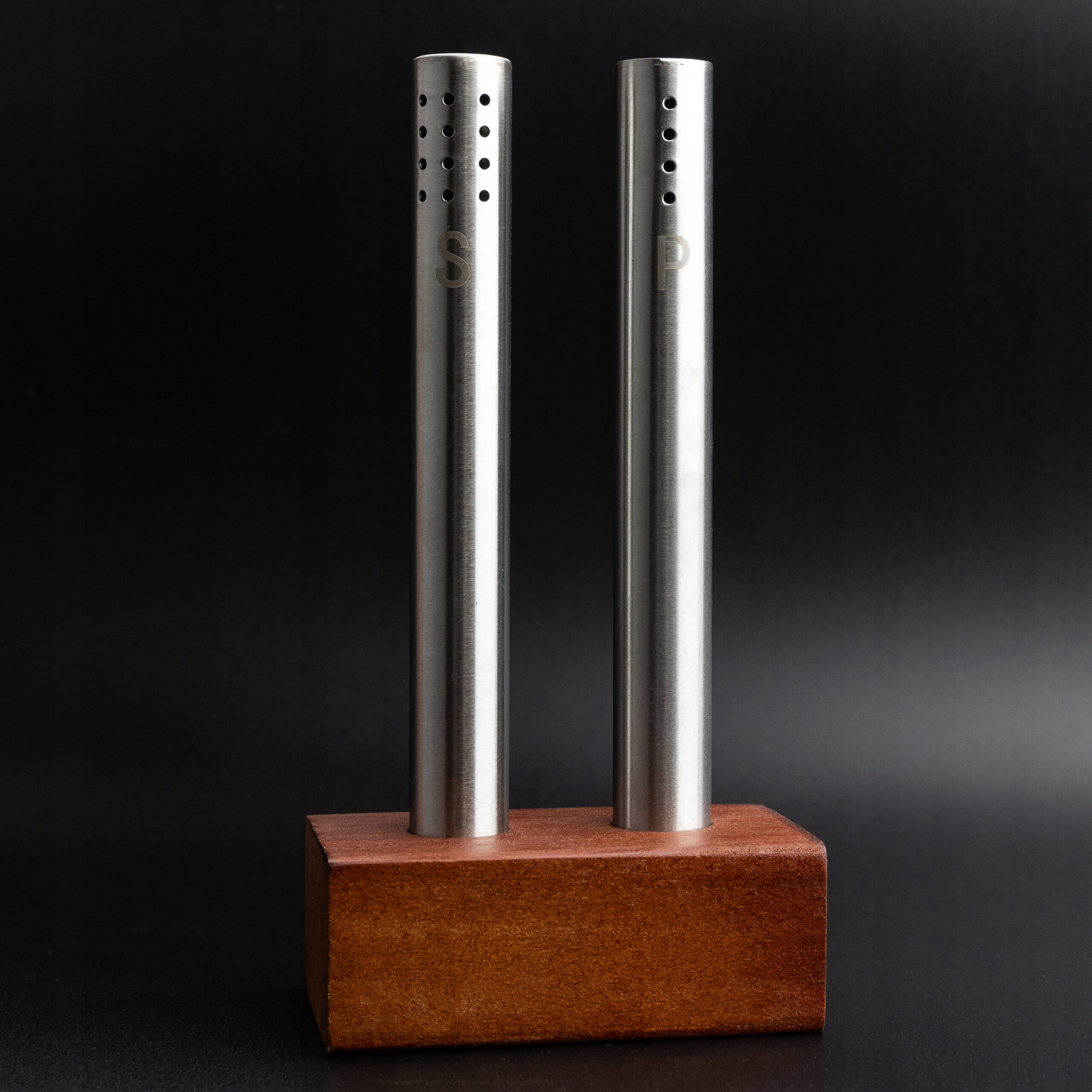 Набір для спецій складається з елегантної сільнички та перечниці на підставці з красивого дерева акації. Обидва контейнери виготовлені з нержавіючої сталі, що робить їх міцними та легкими у догляді. Усі елементи набору ретельно виготовлені та ідеально поєднані між собою, що робить їх ідеальним доповненням до будь-якого столу.