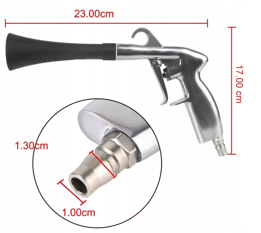 Додаткові переваги: пістолет генерує концентрований повітряний потік, який видаляє вологу з кутів, запобігаючи корозії та цвілі. Точна трубка (10 см) дозволяє досягти прогалин, таких як ручки дверей, дзеркала або компоненти двигуна. Міцний дизайн стійкий до зносу, а універсальний роз'єм 1/4 дюйма забезпечує сумісність з компресорами. Легка експлуатація та можливість регулювання сили потоку (через тригер) збільшують комфорт роботи. Функціональність та надійність йдуть рука об руку з практичним дизайном, що робить його хітом серед деталей аксесуарів. � Чи не мрієте ви про професійне прибирання автомобілів? Замовте зараз і відкрийте силу стисненого повітря!