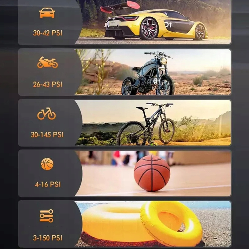 🚘 пропонує 4 заздалегідь задані режими насосів: велосипед, мотоцикл, автомобіль, м'яч. Ви також можете встановити значення тиску за допомогою + і -, залежно від надувних предметів.