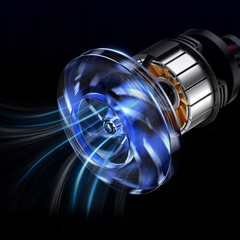 ▷ Лопаті вентилятора з алюмінієвого сплаву з двигуном із чистої міді 50 000 об/хв забезпечують потужний потік повітря та підвищену потужність всмоктування .