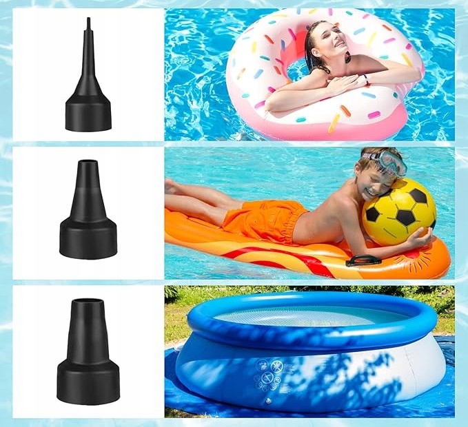 ta Ефективний електричний насос - це незамінний пристрій для кожного надувного продукту: від матраца до басейну та пляжних куль. Він працює з мережевої розетки 230 В та легшого автомобіля 12V , тому він працює в будь -яких умовах.