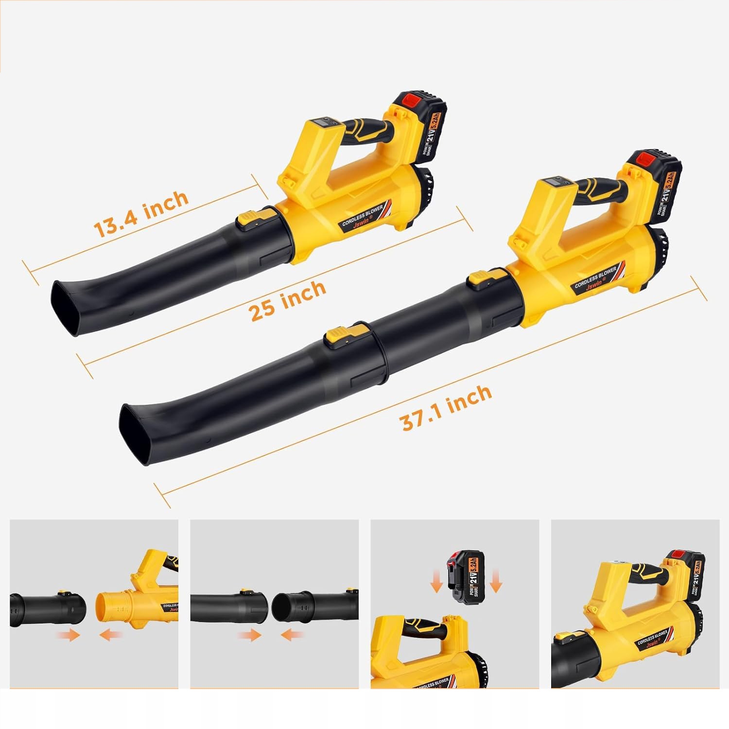 Система акумуляторної акумулятора листя має знімну конструкцію, яка дозволяє замінити форсунки і може бути розповсюджена на дві частини. Легка складання та розбирання одним натисканням кнопки - ідеально підходить для користувачів вентиляторів акумулятора.