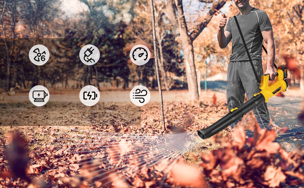 ⏭⏭ ⏭⏭ битва -он -leaf Blower 21 v, електричний пилосос -очищувач листя: пилосос листя з акумулятором та зарядним пристроєм, 6 швидкостей, що використовується для очищення, видалення снігу, гасіння пожеж та видалення пилу. Дизайн виключає плутанину кабелів і дозволяє вільно рухатися без необхідності підключення до електричної розетки.