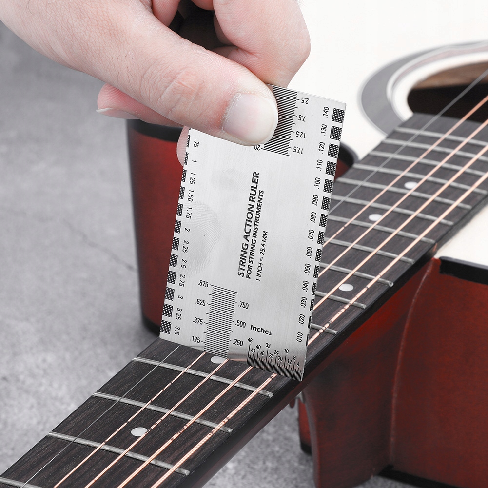 2. Отримання точних вимірювань дії для висоти та відстані струн, висоти сідла грудини, глибини проміжку сідла, висоти стартера перетворювача, порогової глибини та висотою гайки.
