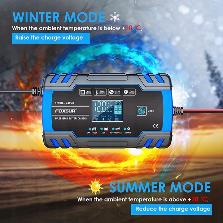 ✅ Високоякісна мікропроцесорний автоматичний випрямляч Foxsur, що дозволяє заряджати встановлені батареї, серед інших: