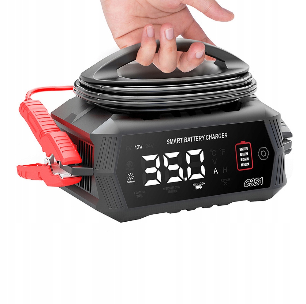зарядний пристрій для акумулятора 35 A, 6 В/12 В/24 В Зарядник автомобілів, зарядний пристрій для акумулятора для автомобілів, мотоцикли, косари, човни, літієві акумулятори, LifePO4 та кислотні (AGM, гель, MF, EFB, SLA, VRLA, WET)